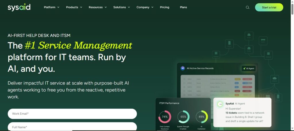 | 4. SysAid (AI ITSM) | Custom | IT help desks |