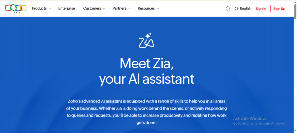 6. Zoho Desk (Zia AI)
