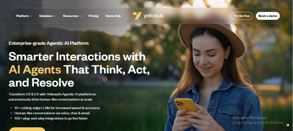 Yellow.ai offers enterprise-grade chat and voice automation across 100+ languages, with 2025’s NLP upgrades achieving 85% deflection for global firms. Additionally, WhatsApp and CRM integrations excel. However, complex setups suit enterprises; custom pricing (~$1,000/mo).