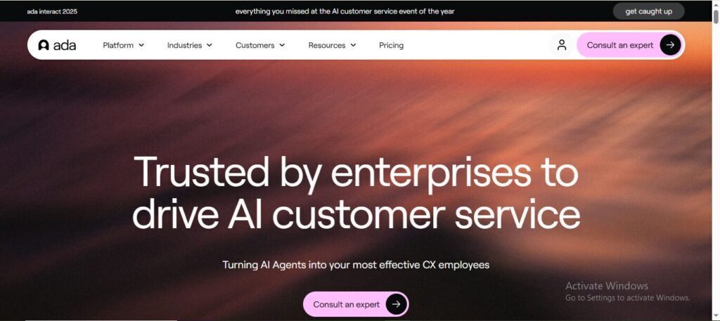| 2. Ada AI | Custom | CX dashboards, automation metrics | Global enterprises |